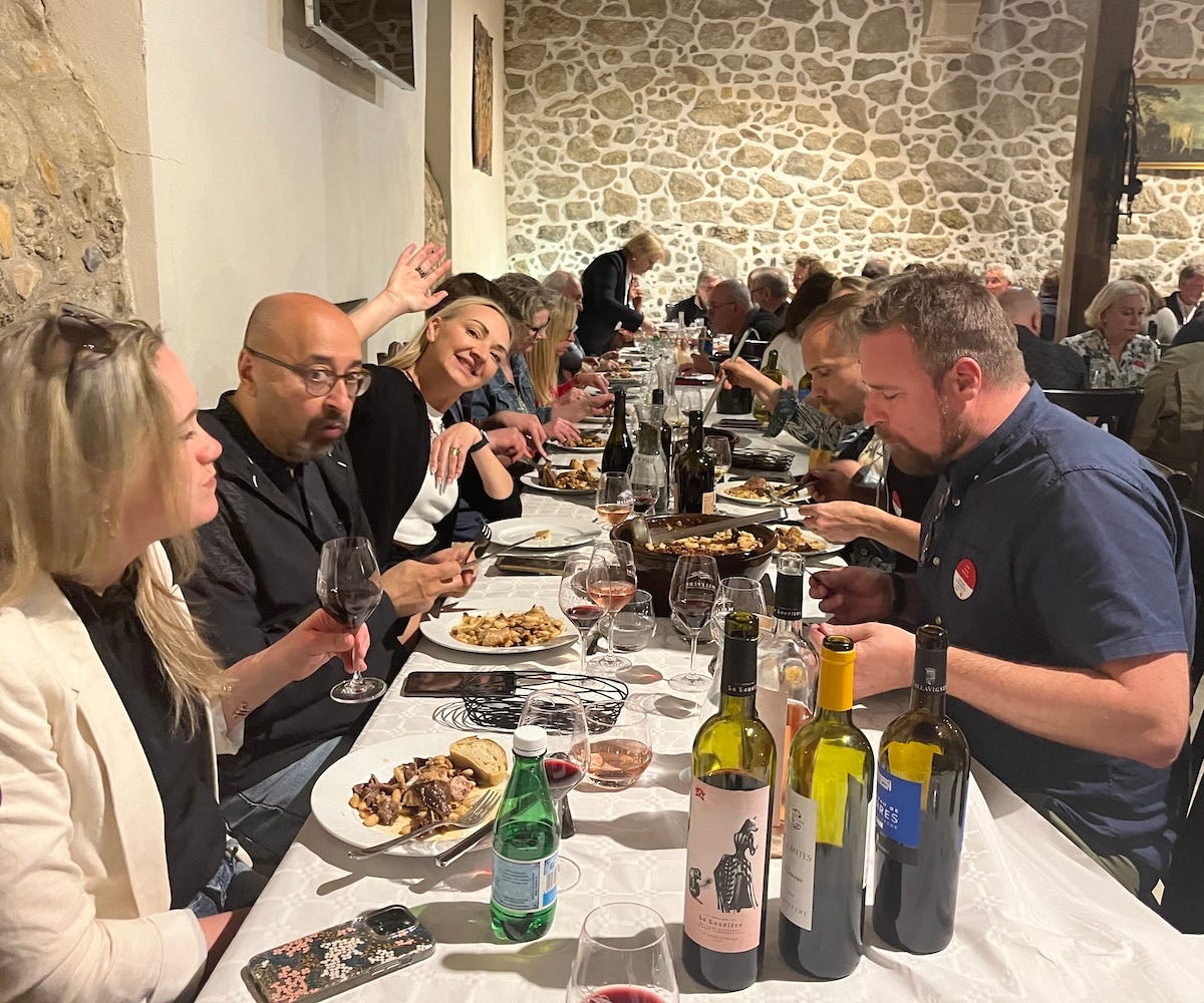 The Prugneto sits on the side of black fruit Sangiovese: more blackberries than dark cherries and a note of violets. It wants food: there remain grippy tannins and it’s Sangiovese, so there’s a good amount of acidity. Since it’s from Emilia-Romagna I’ll vote lasagne (of any kind) as the appropriate pairing.