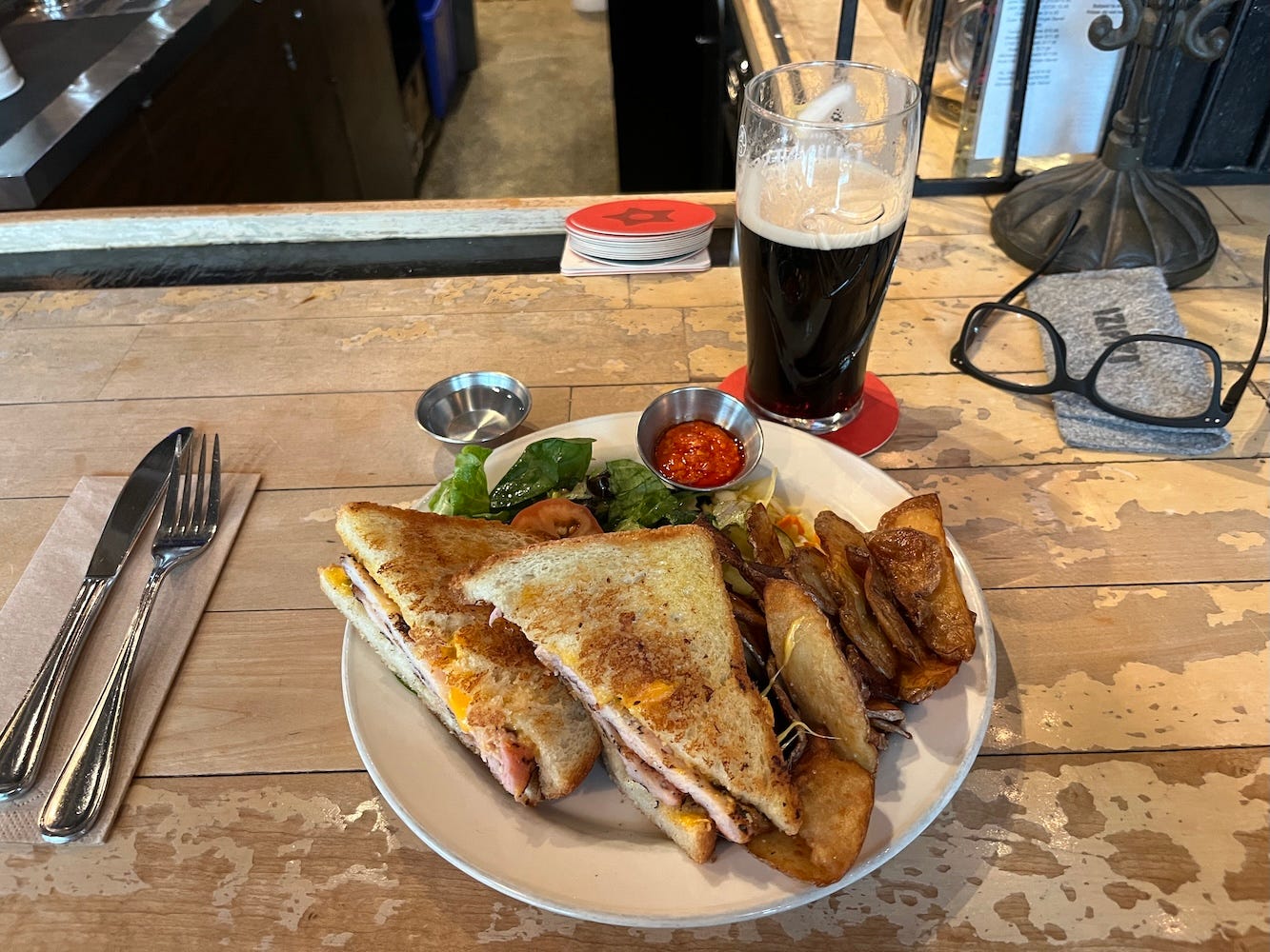 It was a long lunch, with a course to match each glass, and vice versa. I would’ve had a double espresso when it was offered at the end, and might have taken a few mignardises with me, if I retained enough wherewithal to remember to bring a peace offering home. I hope it wasn’t my day to pick the kid up at daycare.